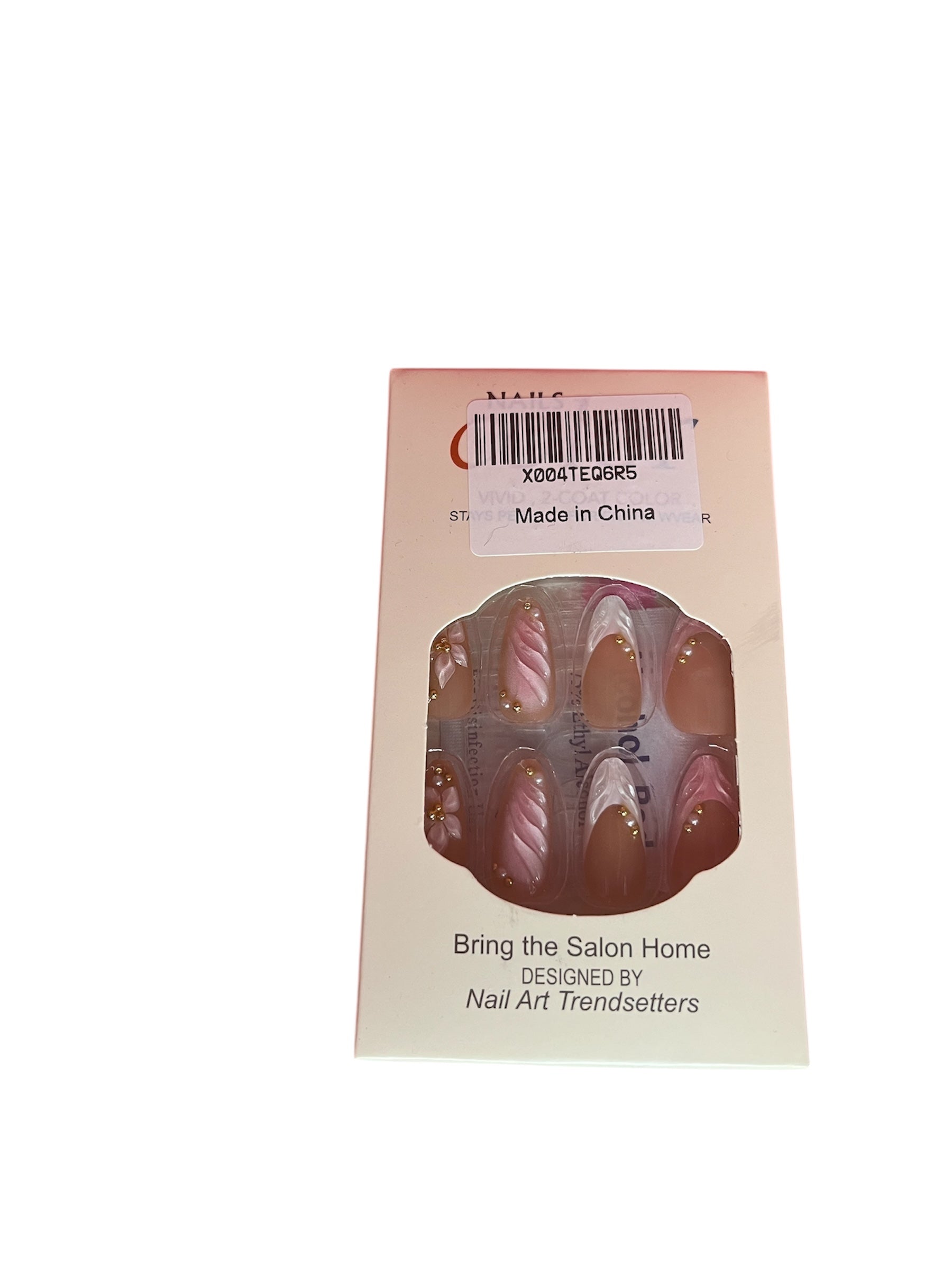3D Embossed Flower & Gold Bead Press On Nails